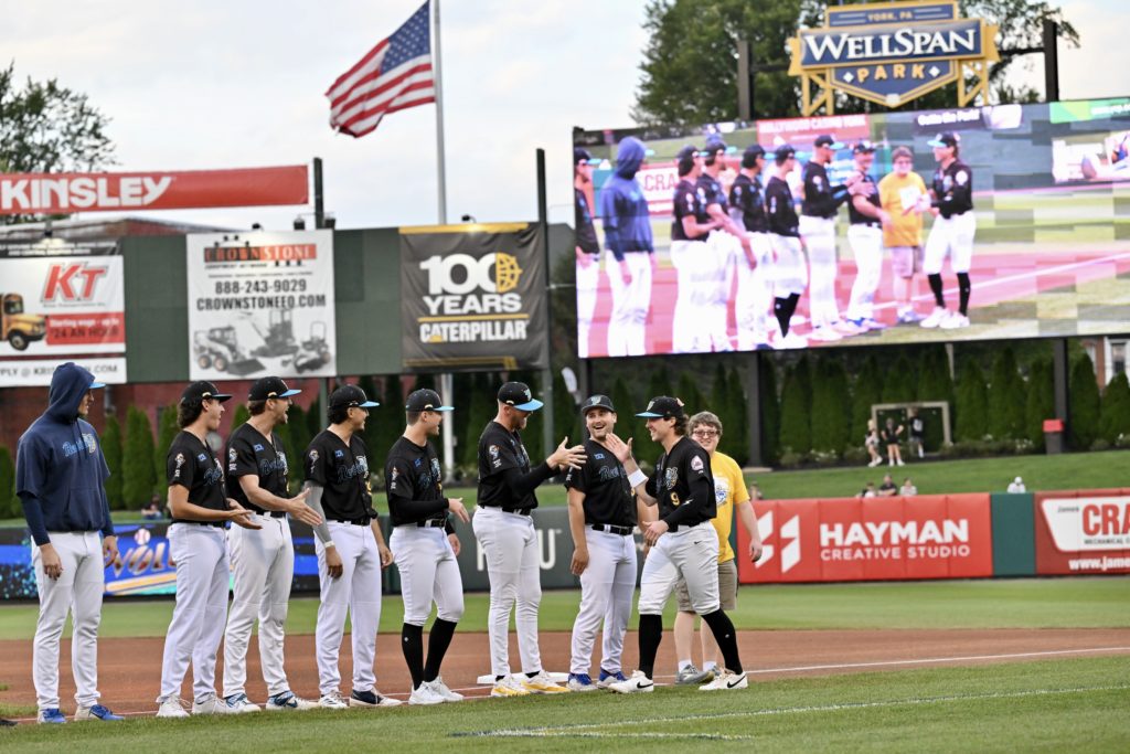 (September 20, 2025 – York, Pa.): The defending and four-time Atlantic League champion York Revolution opened their title defense with a come-from-behind 6-2 victory over the Lancaster Stormers on Saturday night in front of 5,696 fans at WellSpan Park in Game One of the North Division Championship Series. York takes a 1-0 lead in the best-of-five showdown.