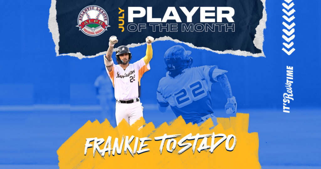(August 6, 2025 – York, Pa.): The York Revolution are pleased to announce that first baseman Frankie Tostado has been selected as the Atlantic League Player of the Month for the month of July. He becomes the Revs’ second monthly award-winner this season, joining closer Cam Robinson who was selected ALPB co-Pitcher of the Month in May.