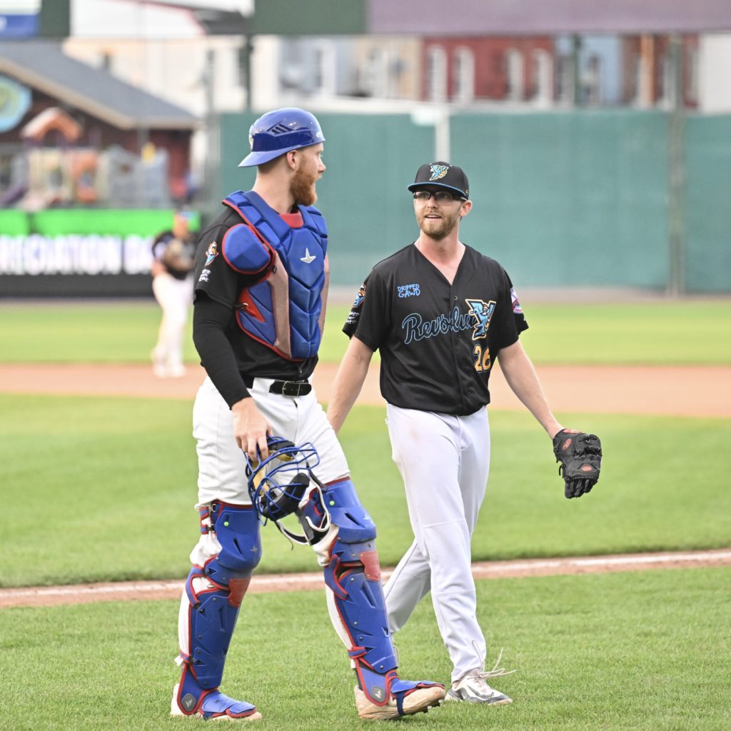 York rallied in the third as Bubba Alleyne walked and stole second, and Ryan Higgins was hit by a pitch to set the table. Jalen Miller’s fly out advanced Alleyne to third, and Jeremy Arocho tied the game with an RBI single chopped hard into right. With two outs, Marty Costes ripped a two-run single through the left side of the infield as the Revs jumped ahead, 3-1.