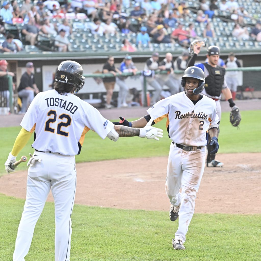 (July 30, 2025 – York, Pa.): The York Revolution put together a solid all-around performance Wednesday night, notching a series win with a wire-to-wire 8-3 victory over the Lancaster Stormers at WellSpan Park. The Revs (50-33) become the league’s second team to 50 victories on the season, while they improve their War of the Roses record to 8-6.