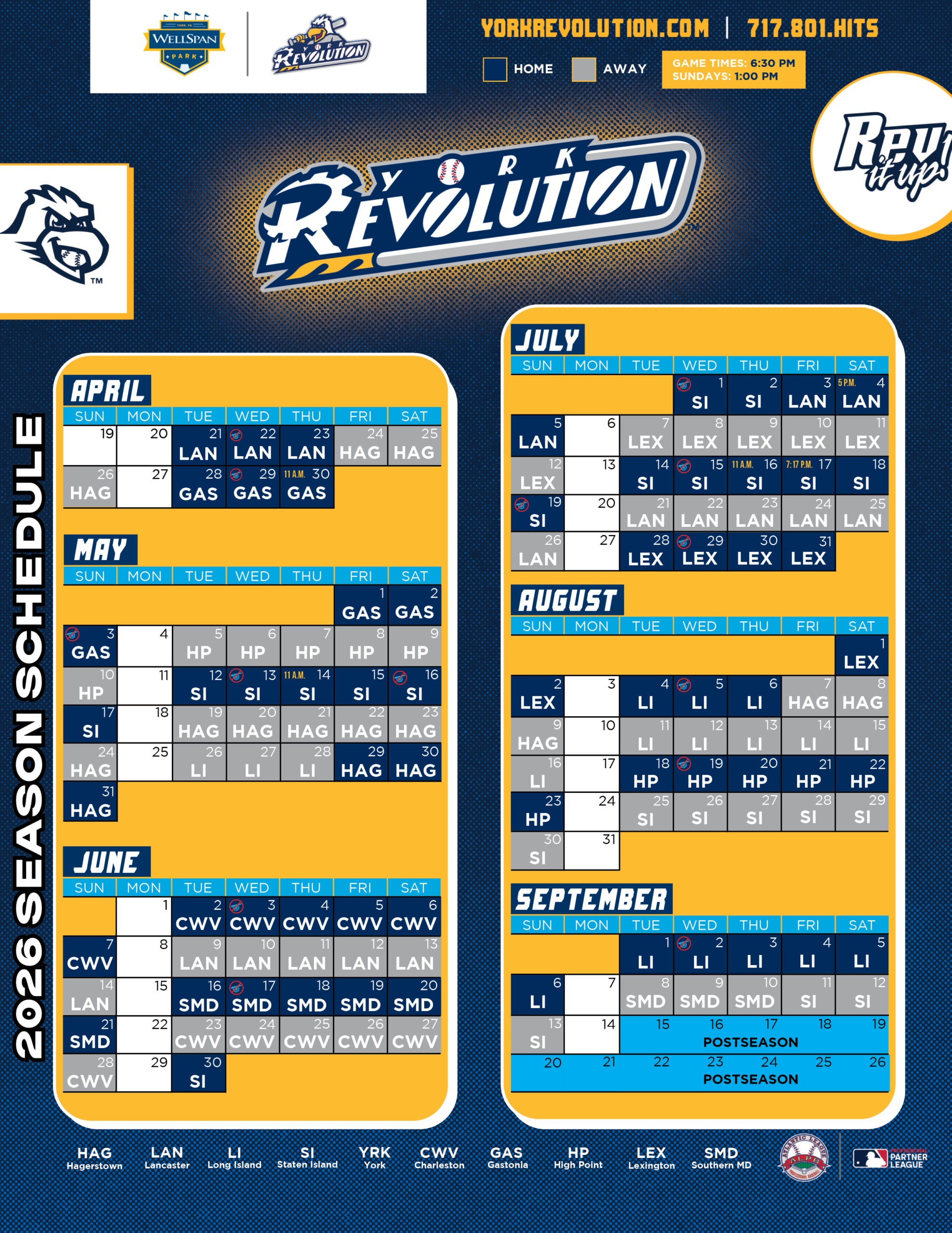 Click here to download a printable version of our 2026 Schedule! Guarantee your seat for every home game for the 19th Season of Revs Time. Consider joining our Season Member family!